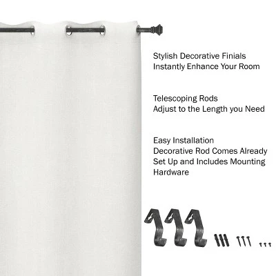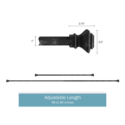 1-Inch Curtain Rod- Decorative Modern Square Finials And Hardware- For Home Decor In Bedroom And Kitchen, 48-84-Inch By Hastings Home (Black)