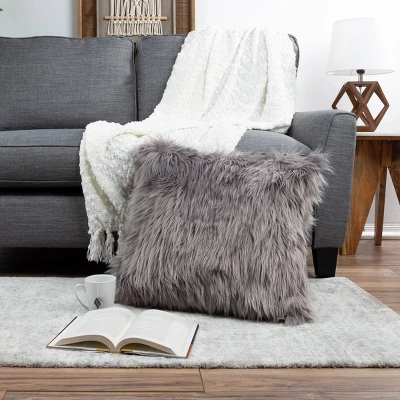 22″x22″ Oversize Faux Fur Square Throw Pillow – Hastings Home