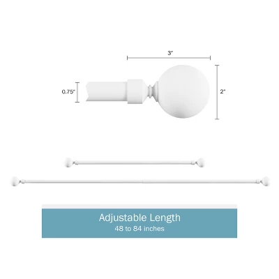 3/4-Inch Curtain Rod- Decorative Ball Finials And Hardware- For Home Decor In Bedroom And Kitchen- 48-84-Inch By Hastings Home (White)