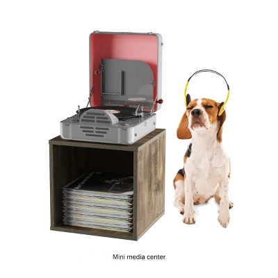 Bring the best of style and function to your home with the Modular Cube Side Table by Hastings Home. The modern, clean lines and chic, updated style bring casual elegance to your home. The table is constructed from sturdy manufactured wood that supports a 22-pound weight capacity on each shelf as well as the table top. It can be used freestanding on its own, side by side with another to create a coffee table or with bracing kits (not included) to stack for vertical shelving. The end table can be assembled easily with the included hardware and convenient, pre-drilled holes on each piece of the unit. The open front is great for displaying and organizing a variety of items like books, magazines, collectibles and even vinyl records! The rustic wood grain finish of this side table is sure to enhance your living space decor.