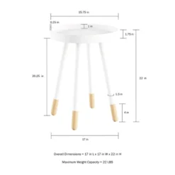Hastings Home Mid-Century Modern Round Wooden End Table With Tray Top – White/Natural