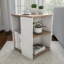 Hastings Home Minimalist Two-Toned Accent Side Table With Open Shelve, Brown/White