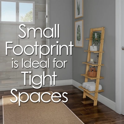 - SPACE-SAVING – This leaning bookshelf attaches to most walls and its 15-inch-wide footprint is great for any living area, including apartments, tiny homes, or dorm rooms. Turn empty wall space into a focal point with this compact ladder bookcase.