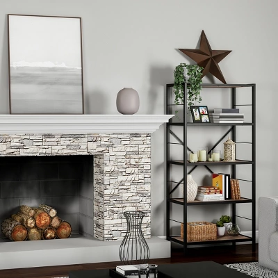 The clean lines of the Industrial Style Bookshelf by Hastings Home provide a stylish yet functional piece for your home or office. This 5-tier shelving unit creates the perfect platform for displaying books, knick-knacks, photo frames, or another home décor. This freestanding bookcase is made in Vietnam of rustic-looking manufactured wood with a brown woodgrain finish and a black steel frame that is sure to turn empty wall space into a focal point that is both attractive and purposeful for years to come.