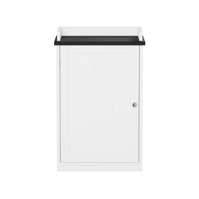 Hastings Home Freestanding Bathroom Storage Cabinet With Slat Door And Gallery Style Top – White/Black