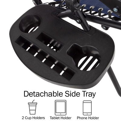 Update your patio furniture set with these two Zero-Gravity Recliner Chairs by Hastings Home. Perfect for use as camping accessories, lawn chairs, or patio seating, these recliner chairs offer customized comfort by locking into place just where you want them and staying put via stable, skid-proof bases. Enjoy easy access to drinks and electronics by keeping them on the detachable side trays of these folding chairs.