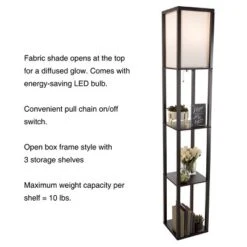 Hastings Home Floor Lamp β Etagere Style Standing Light With 3 Tiers Of Storage Shelving, Black