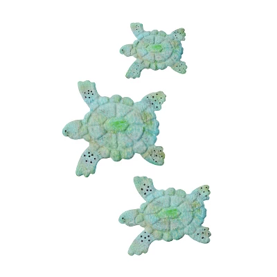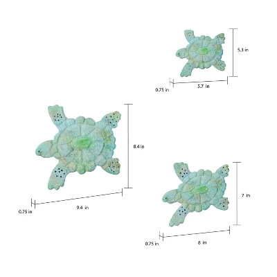 Sea Turtle Wall Art- Nautical 3D Metal Hanging Decor-Vintage Coastal Seaside Inspired Style-Under Water Sea Life Ocean By Hastings Home 3PC