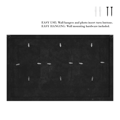 - EASY HANGING- No assembly required, This photo collage frame has hanging hooks and already comes with screws and drywall anchors for easy wall mounting, Simply use turn buttons to open back to insert photos or artwork