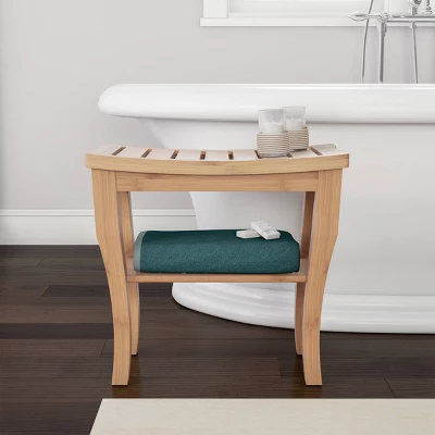 Water Resistant Natural Eco Friendly Bamboo Shower Bench With Bathroom Storage Shelf Brown – Hastings Home